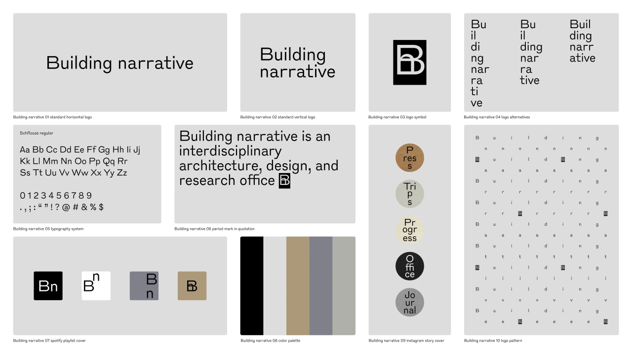 Building narrative is a narrative-driven typographic identity that narrates the architectural and spacial experiments of the architectural collective. It experiments with architectural structure in typography.