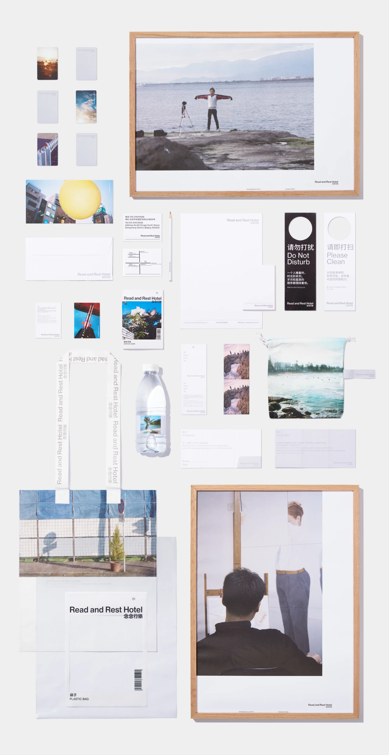 Read and Rest Hotel is a boutique hotel for readers. The identity highlights the concepts of "space" and "reading", foregoing style and curating white space for idle reflection, allowing the visitor to the hotel and to the city to form a visual narrative of their own. Candid photography of cities of china contributed by 16 Hon and Jeff Yiu.